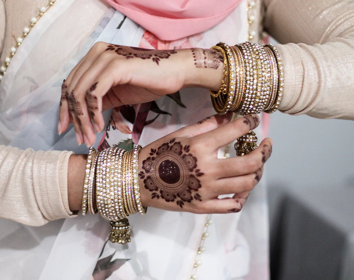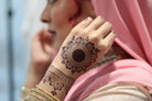 Riwaayat means tradition in Urdu -- this is a traditional design focused on the mandala and bringing back the custom of drawing a large circle in the middle of the palm, with the henna.squared twist!